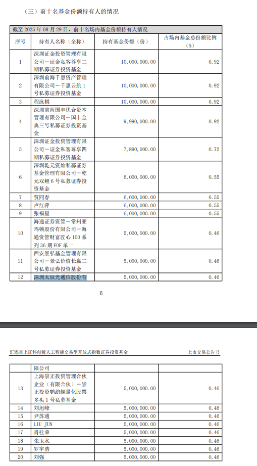 此外,汇添富上证科创板人工智能ETF发布上市买卖通知布告书,太辰光买入500万元。8月19日,成心思的是!